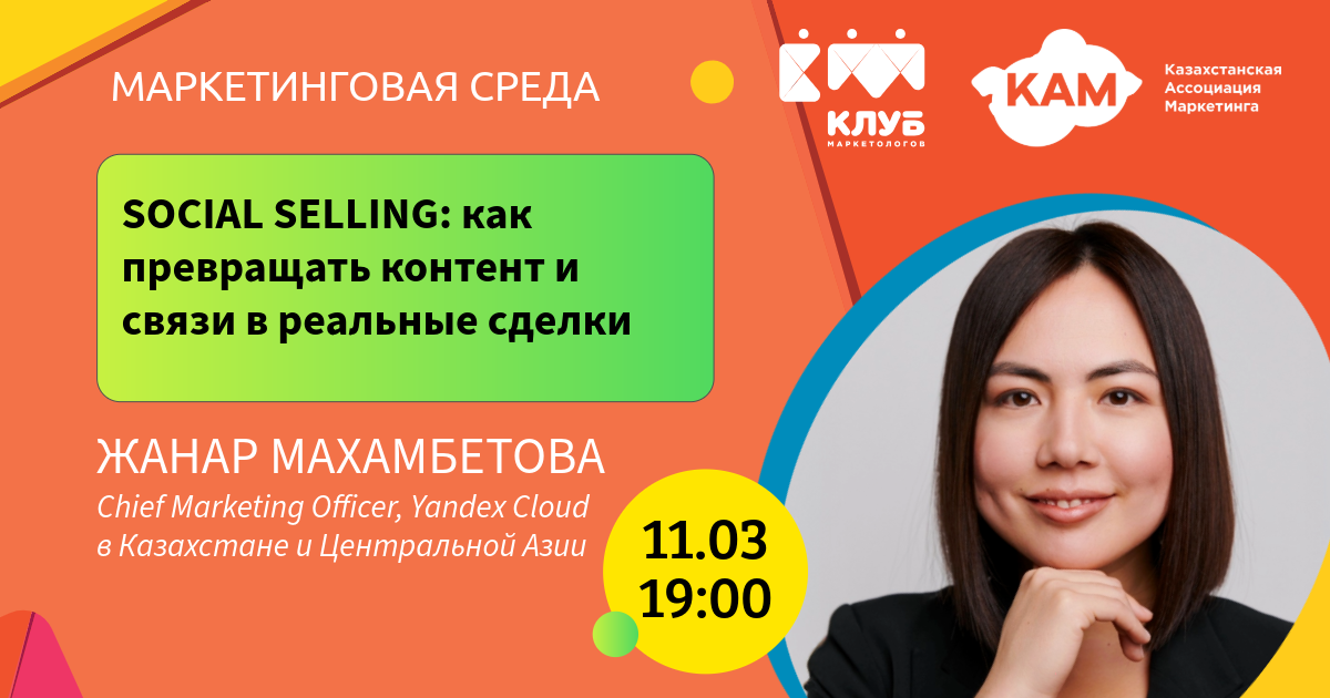 Гостем встречи стала Жанар Махамбетова — Chief Marketing Officer Yandex Cloud в Казахстане и Центральной Азии. В своём выступлении она рассказала о подходе Social Selling — системной работе с профессиональными связями и контентом сотрудников как источником доверия, новых контактов и деловых возможностей.